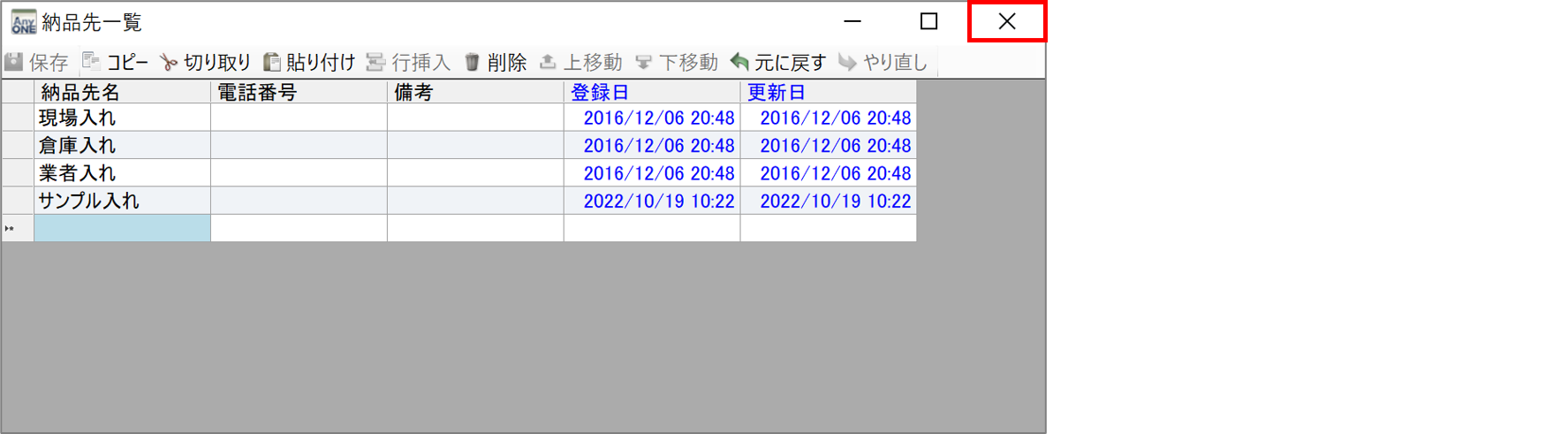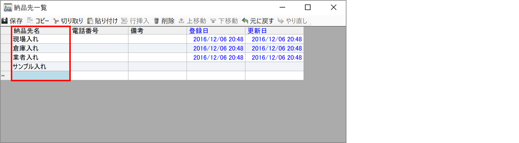 2)『納品先一覧』画面が表示されるので「納品先」に登録したい納品先名を編集・入力します。