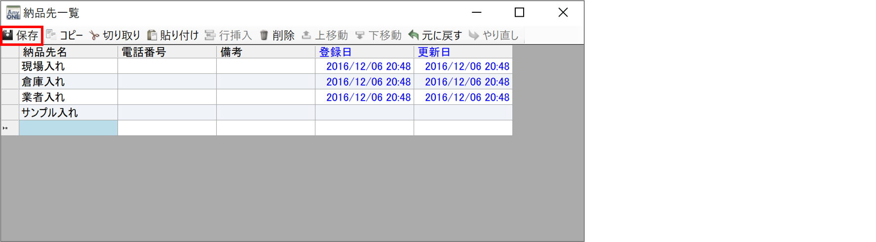3)入力完了後、ツールバーの「保存」ボタンをクリックします。