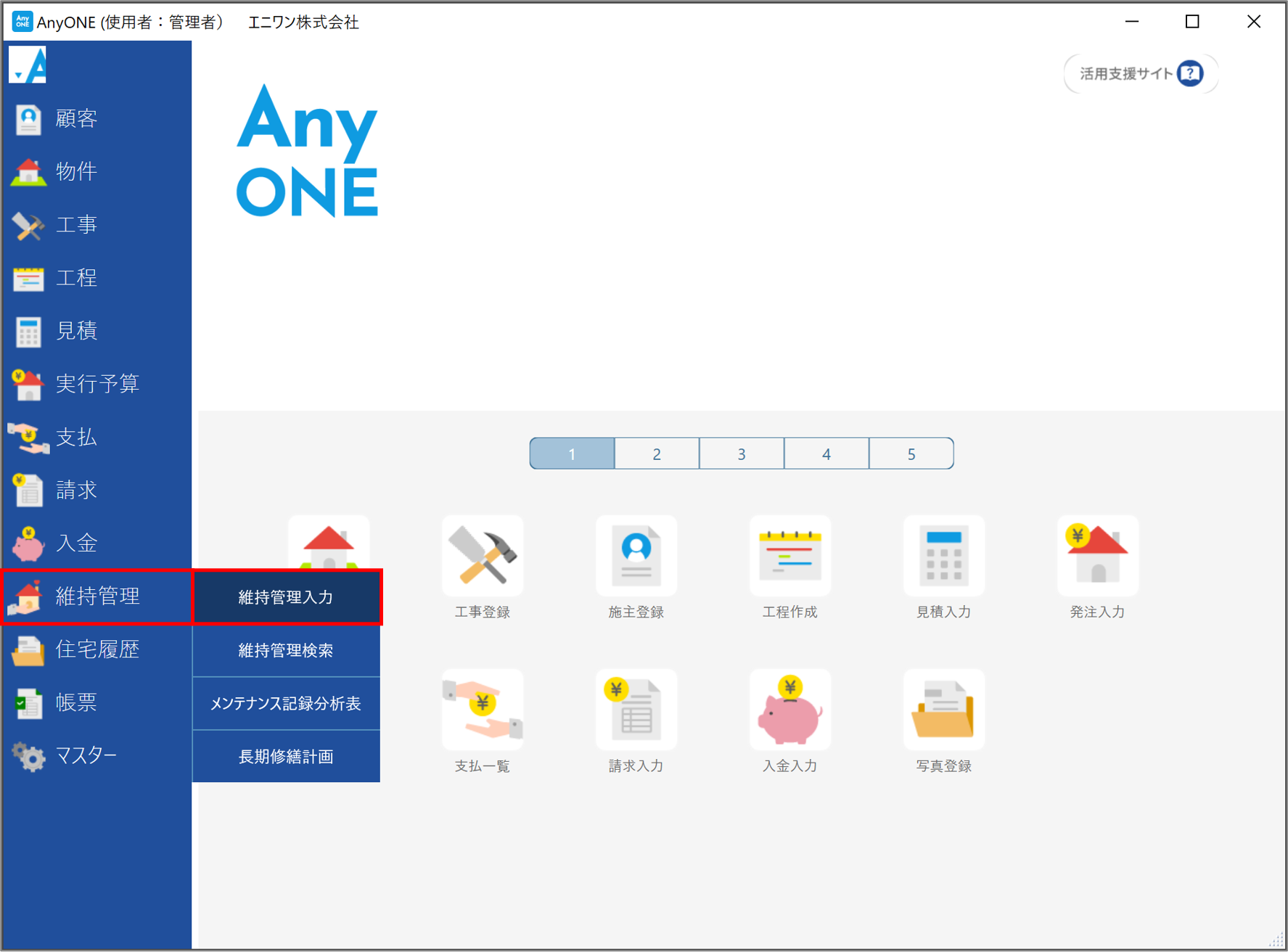 1)【維持管理】>【維持管理入力】をクリックします。