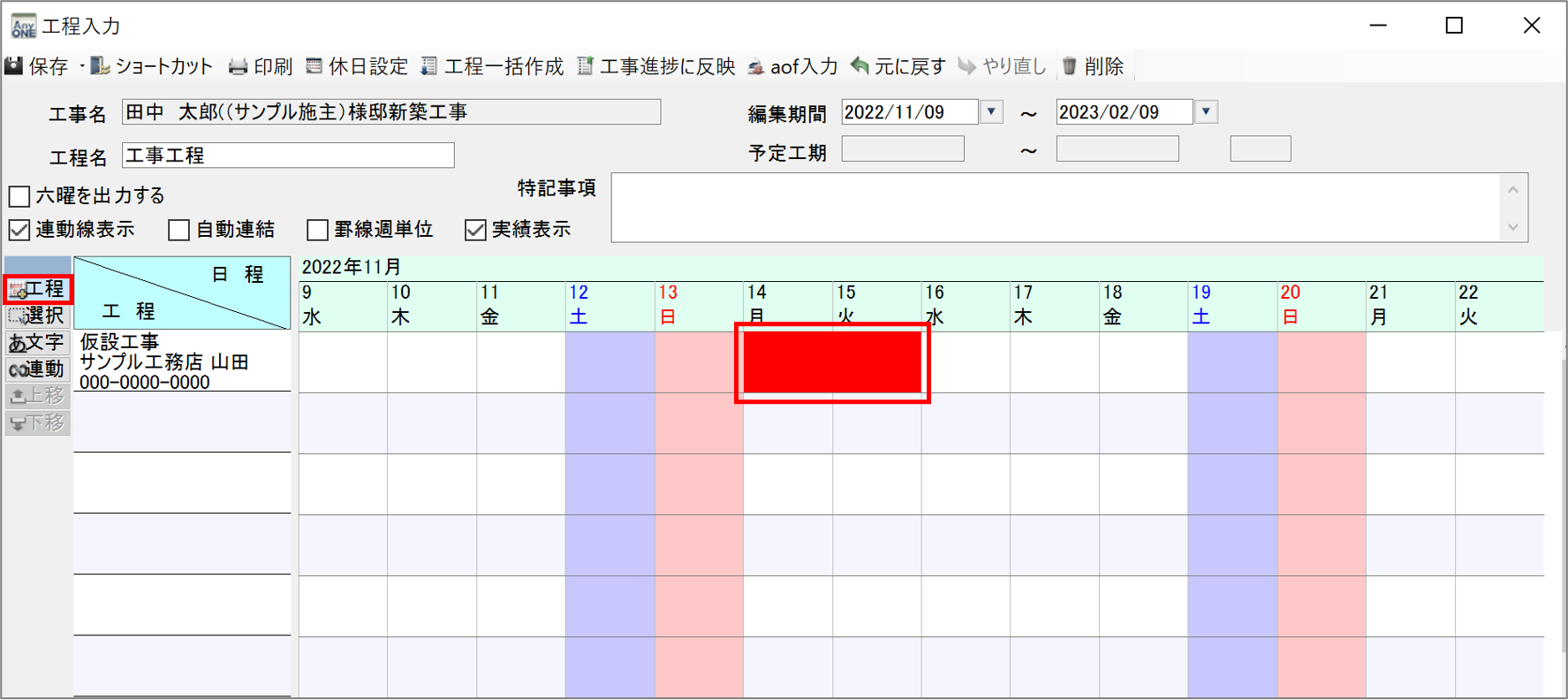 17)工程が入力できたらツールバーの「保存」ボタンをクリックします。