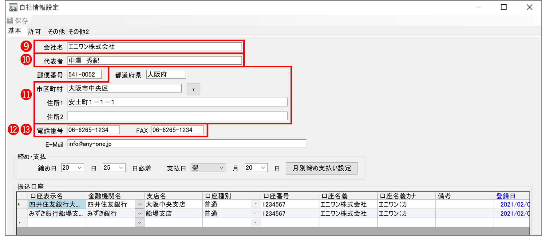 【マスター】>【自社関連】>【自社情報】>『自社情報設定』画面