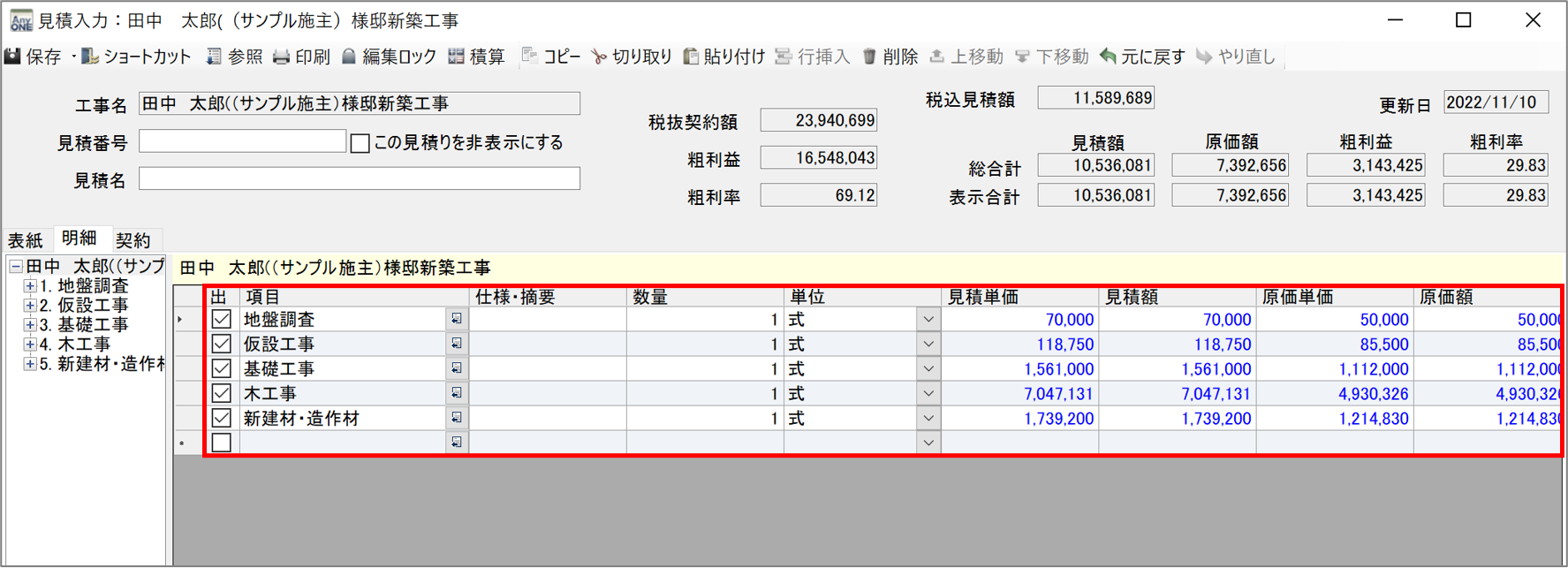 5)参照した見積が取り込まれます。
