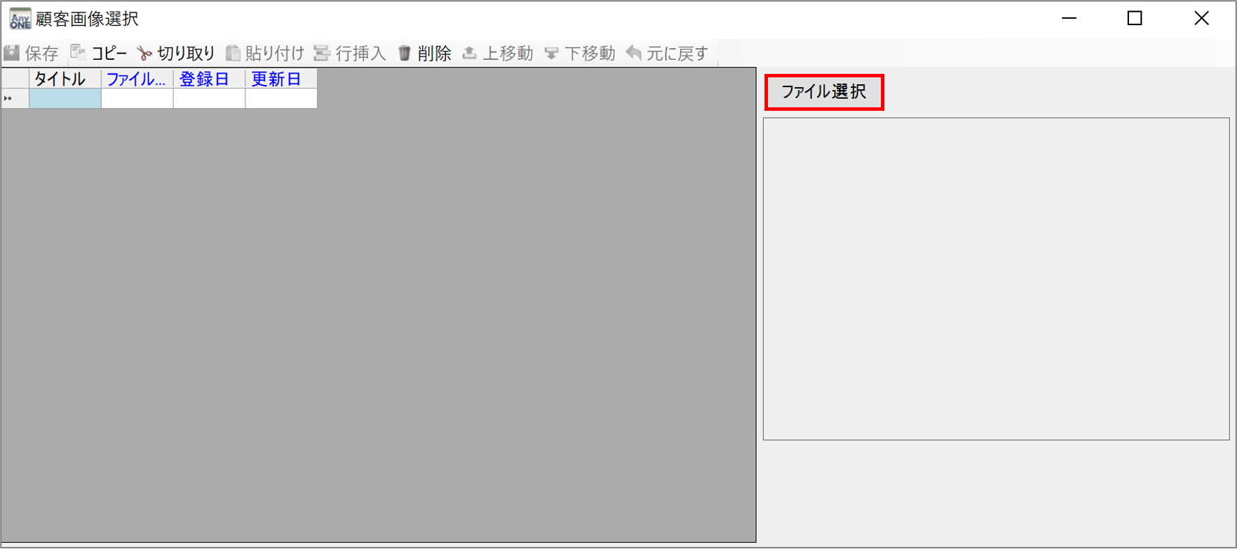 4)『顧客画像選択』画面が表示されるので、「ファイル選択」ボタンをクリックします。