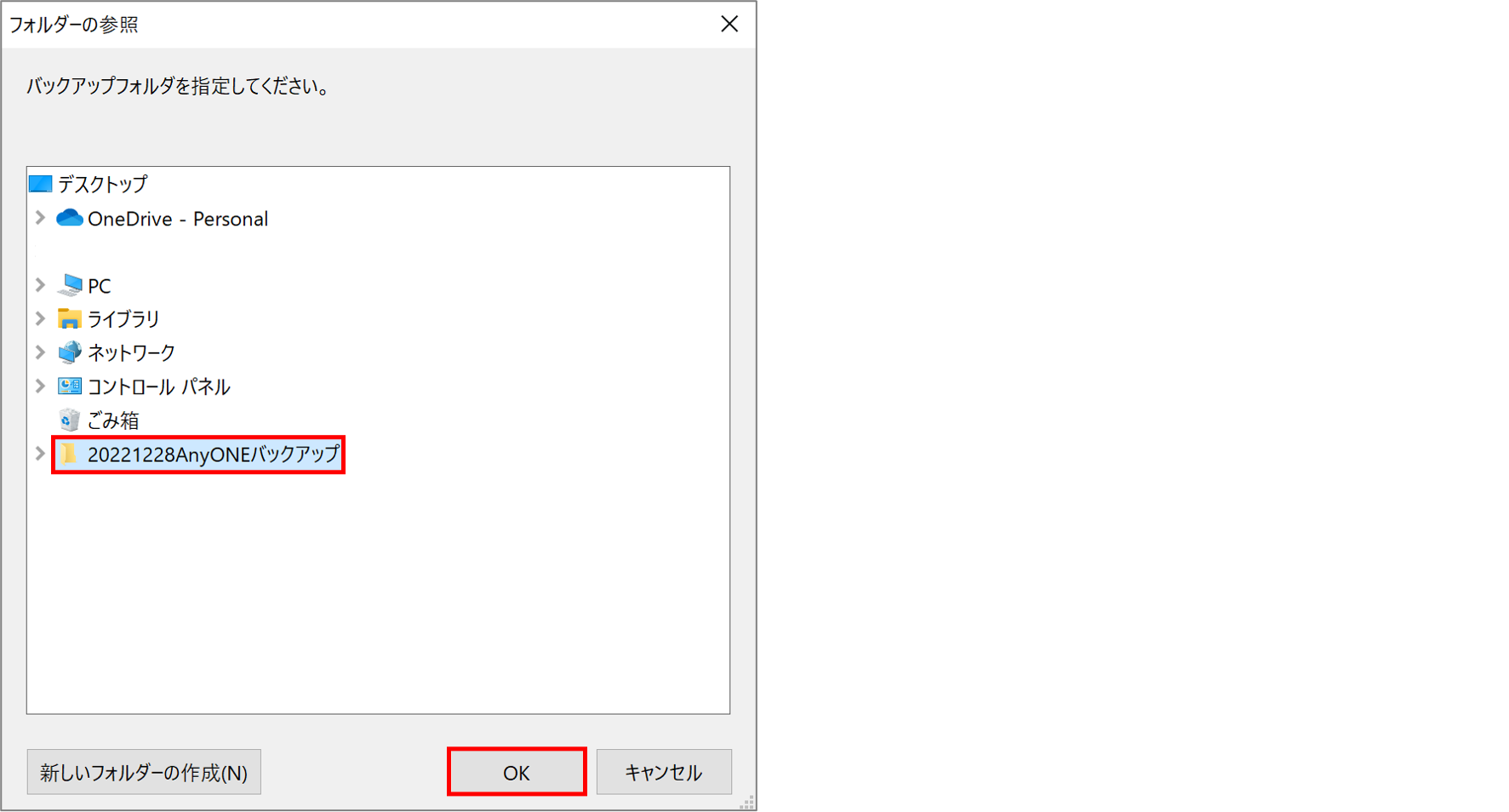 ※バックアップデータのいずれか1つだけを選択するのではなく、バックアップしたデータすべてを1つのフォルダに入れ、そのフォルダを選択してください。