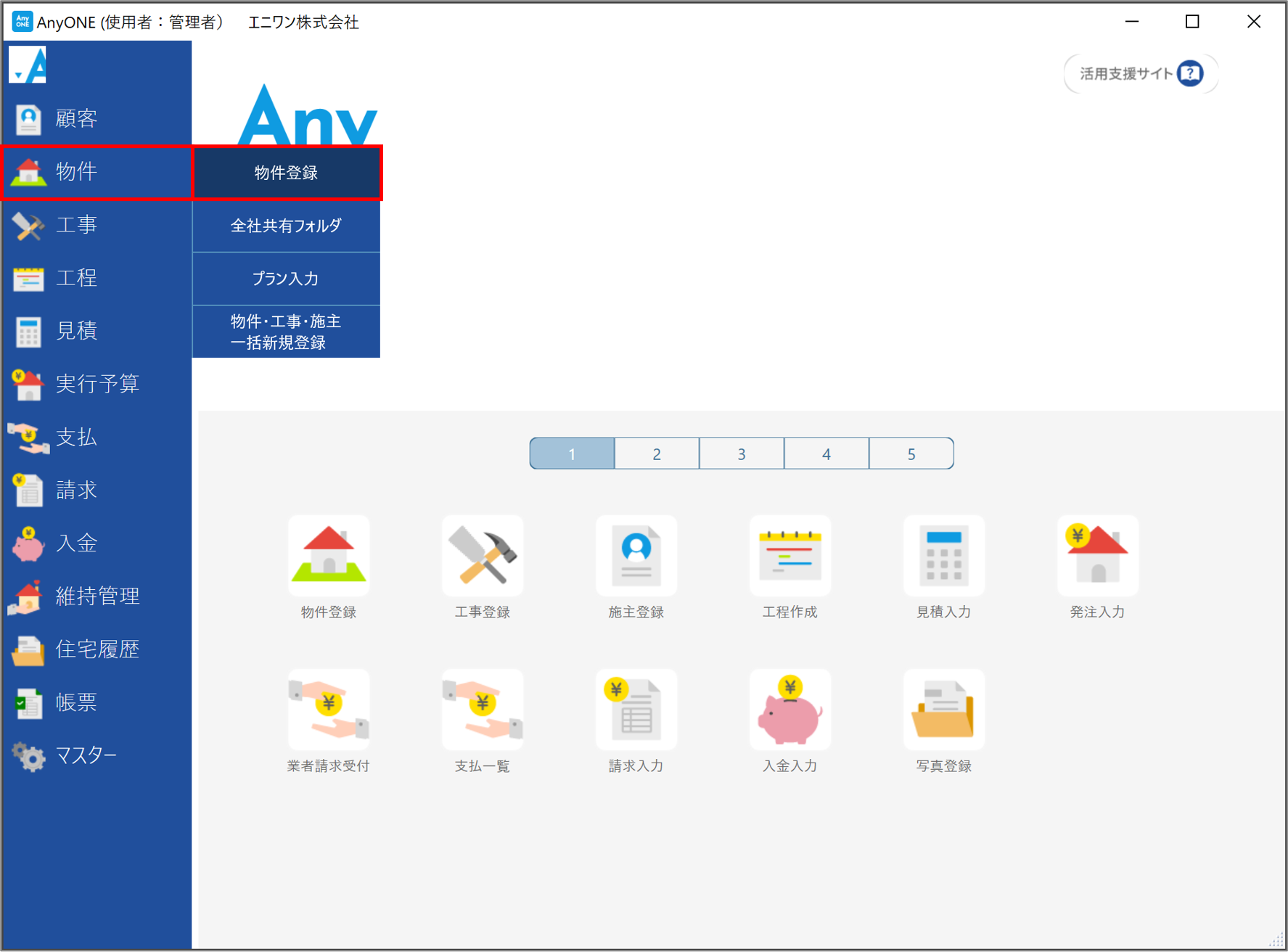 16)【物件】>【物件登録】をクリックします。