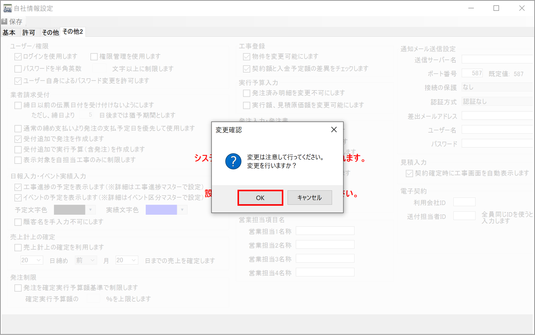 22)『変更確認』画面が表示されるので、「OK」ボタンをクリックします。
