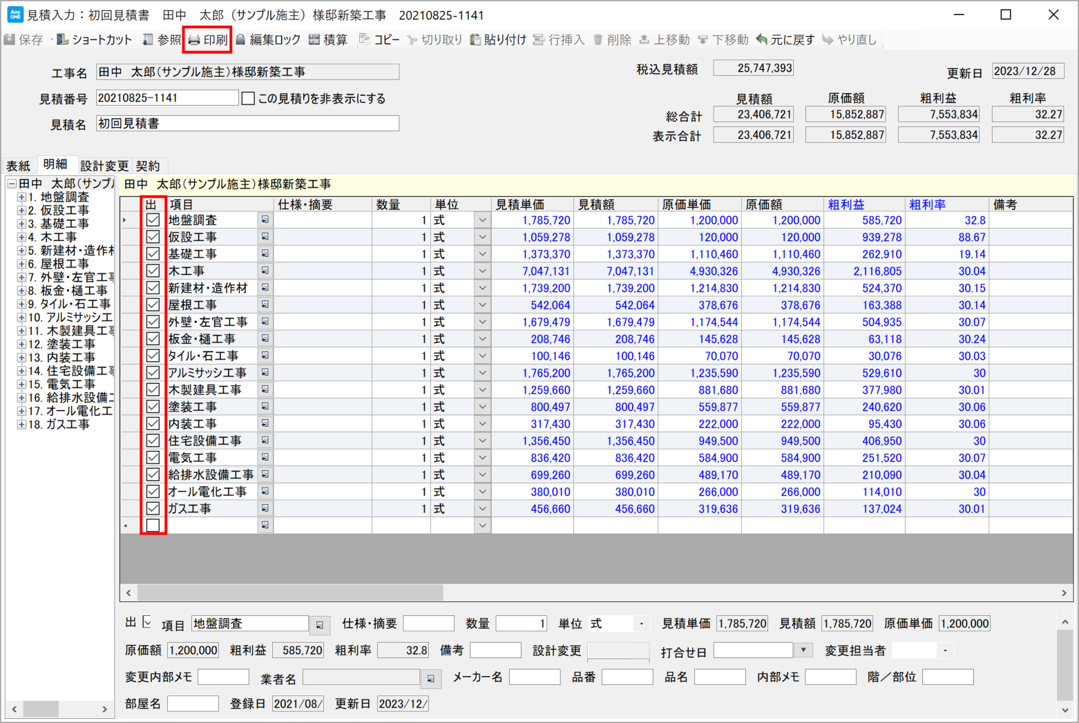 ※設計変更の方法については、マニュアル「見積明細で変更内容を記録する方法」をご覧ください。