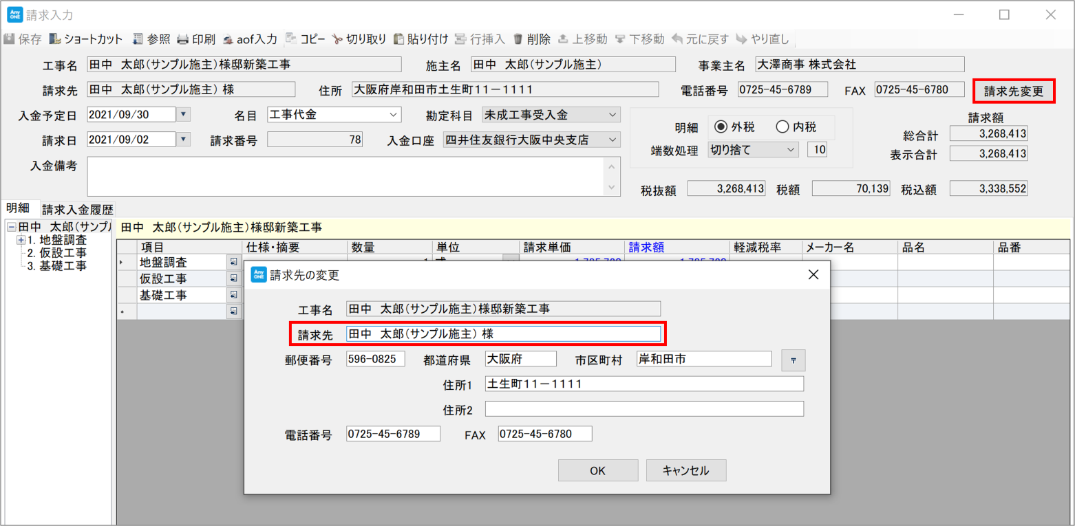 ➓工事名:『請求入力』画面の「工事名」(『工事登録』画面の「工事名」)