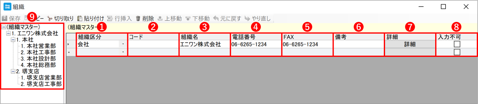 ※❶~❽の内容は、➐の『組織詳細』画面に反映されます。