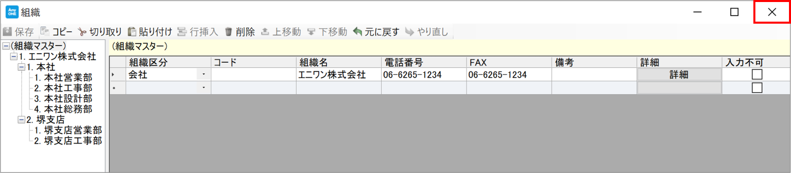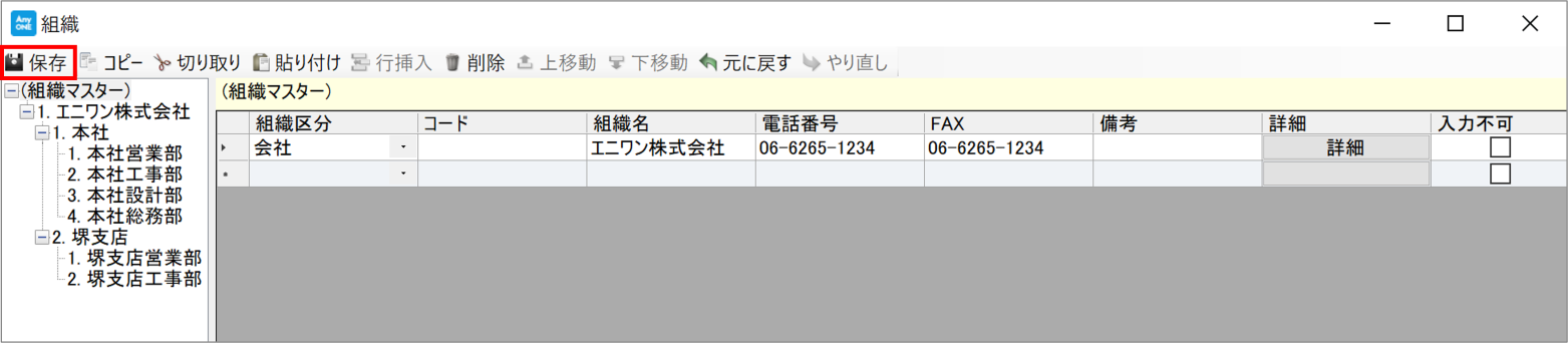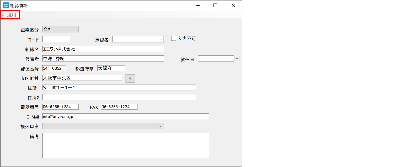 AnyONEでは事業所や部署などの組織名称を登録できます。登録した組織情報は、顧客や工事の管轄事業所として選択でき、請求書などで事業所に応じた振込先口座を出力することも可能です。また『担当者一覧』画面で各担当者ごとに組織名の設定もできます。