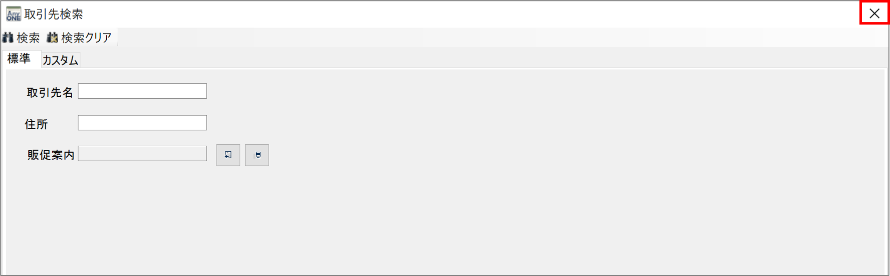 3)『取引先検索』画面に戻るので、右上の「✖」をクリックして閉じます。