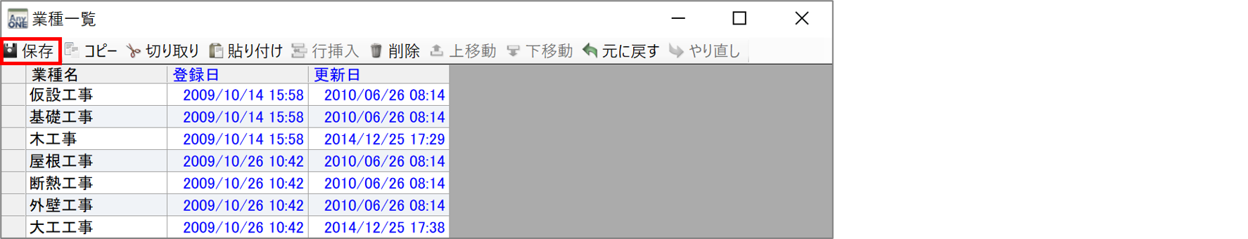 8)登録完了後、ツールバーの「保存」ボタンをクリックします。