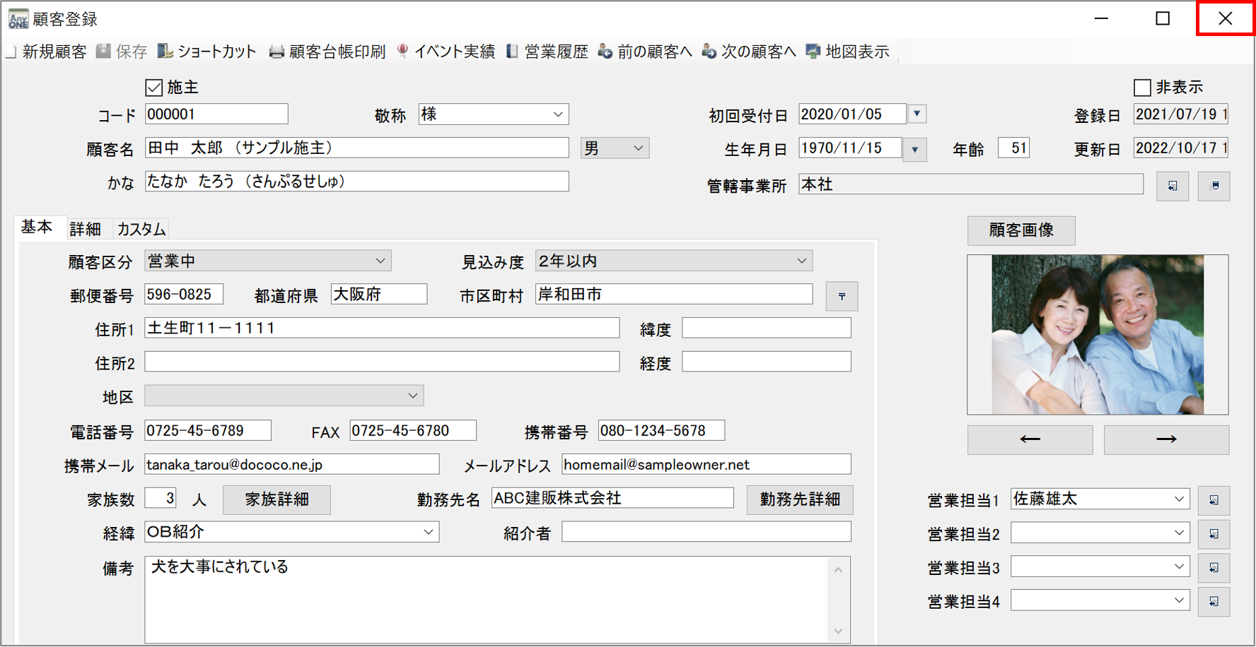 6)『顧客登録』画面に戻るので、ツールバーの「保存」ボタンをクリックします。