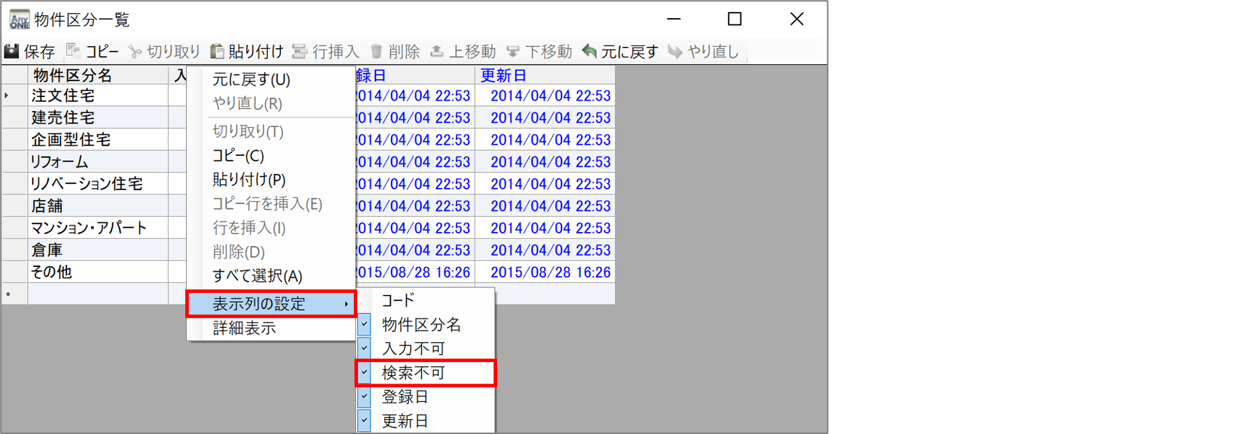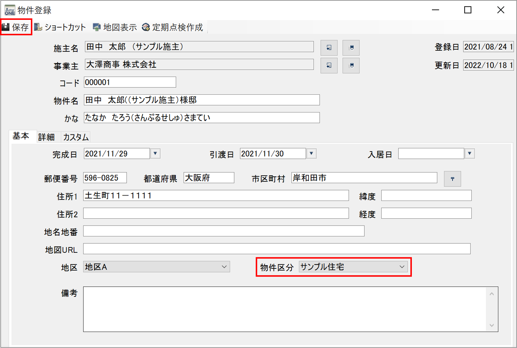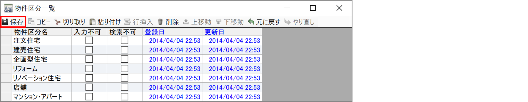 物件区分のマスター登録