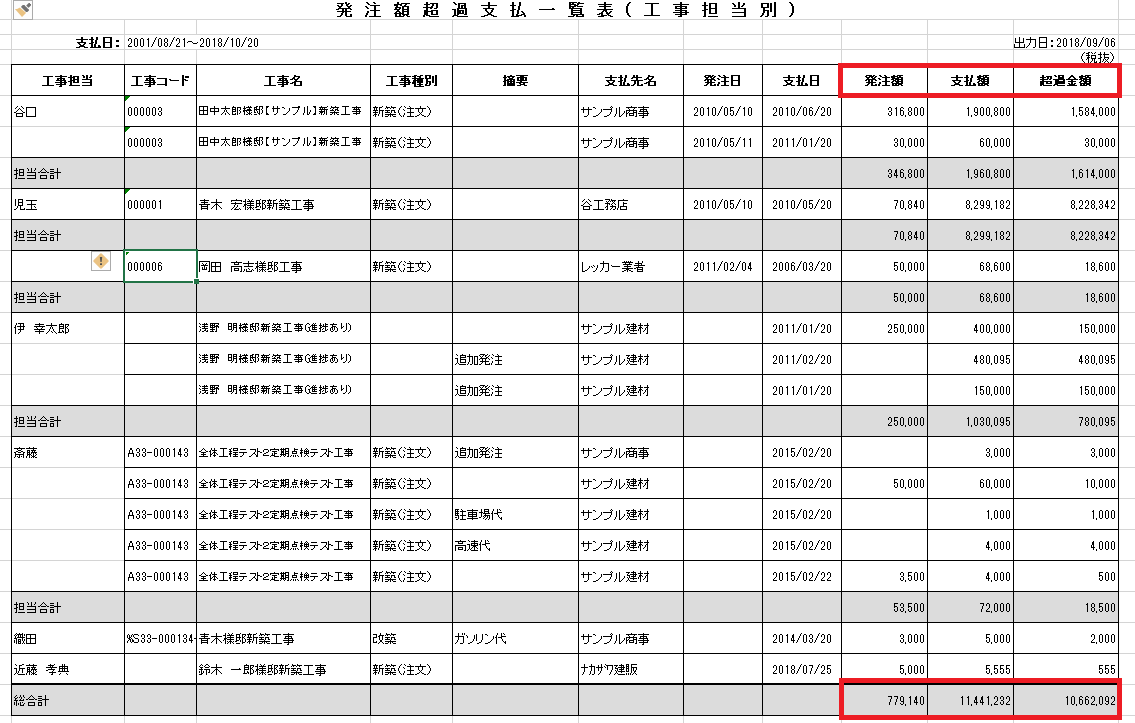 発注額超過支払一覧表もその中の一つで、実際の発注額と支払額をAnyONEから出力し、その差額を自動計算し、表示してくれます。