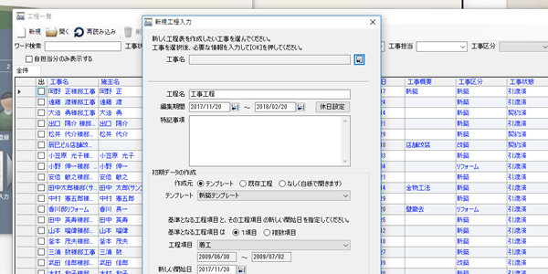 その際に休日設定があれば、新しい日程の工程表ではその休日を外して工程をセットしたり、休日を跨いでいる工程はその休日分を工期延長したりと、貴社の休日を考慮して自動作成してくれるのです。