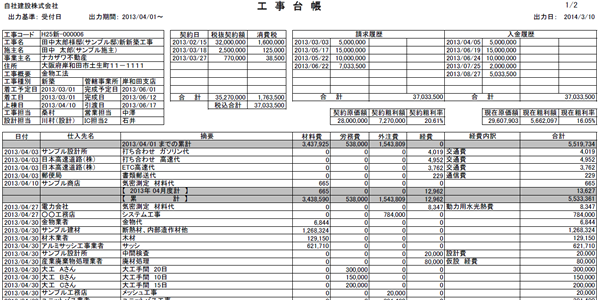 現場ごとに発生した労務費や材料費、外注費や経費を記載し、どれくらい利益が出たのか、また実行予算で組んだ想定粗利に対し、実質の粗利とどれくらい乖離しているのかを明らかにする工事台帳。次回以降の粗利改善に繋がる、自社の問題点を浮き彫りにできるので、工務店にとっては非常に重要な台帳です。