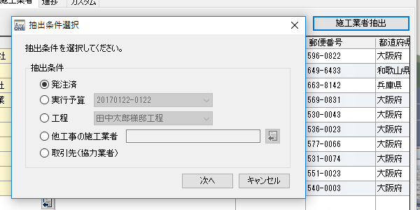 すでに実行予算や発注管理で業者様を指定していれば、クリックひとつでその情報を元に施工業者様を抽出することができます。
