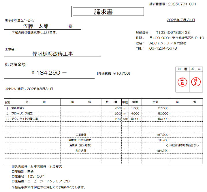 内装工事に関わる請求書の作成には、正確さと分かりやすさが求められます。